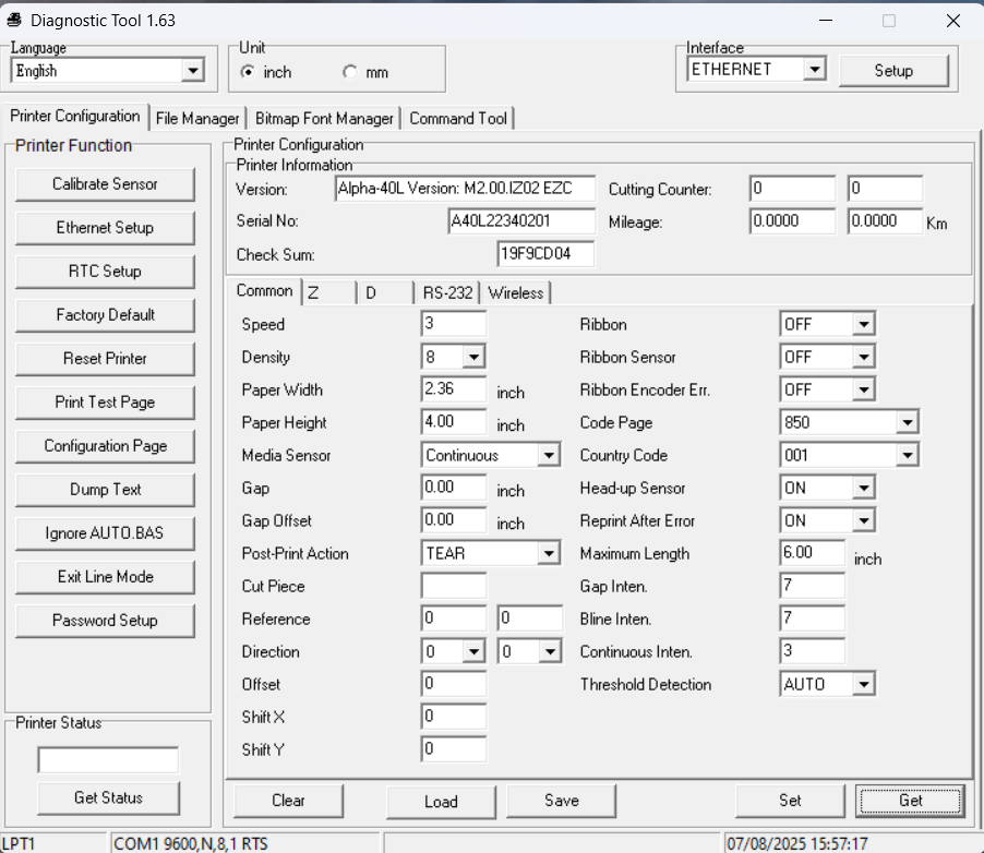 in the main page you can setup the parameters of the printer: speed, density,etc
